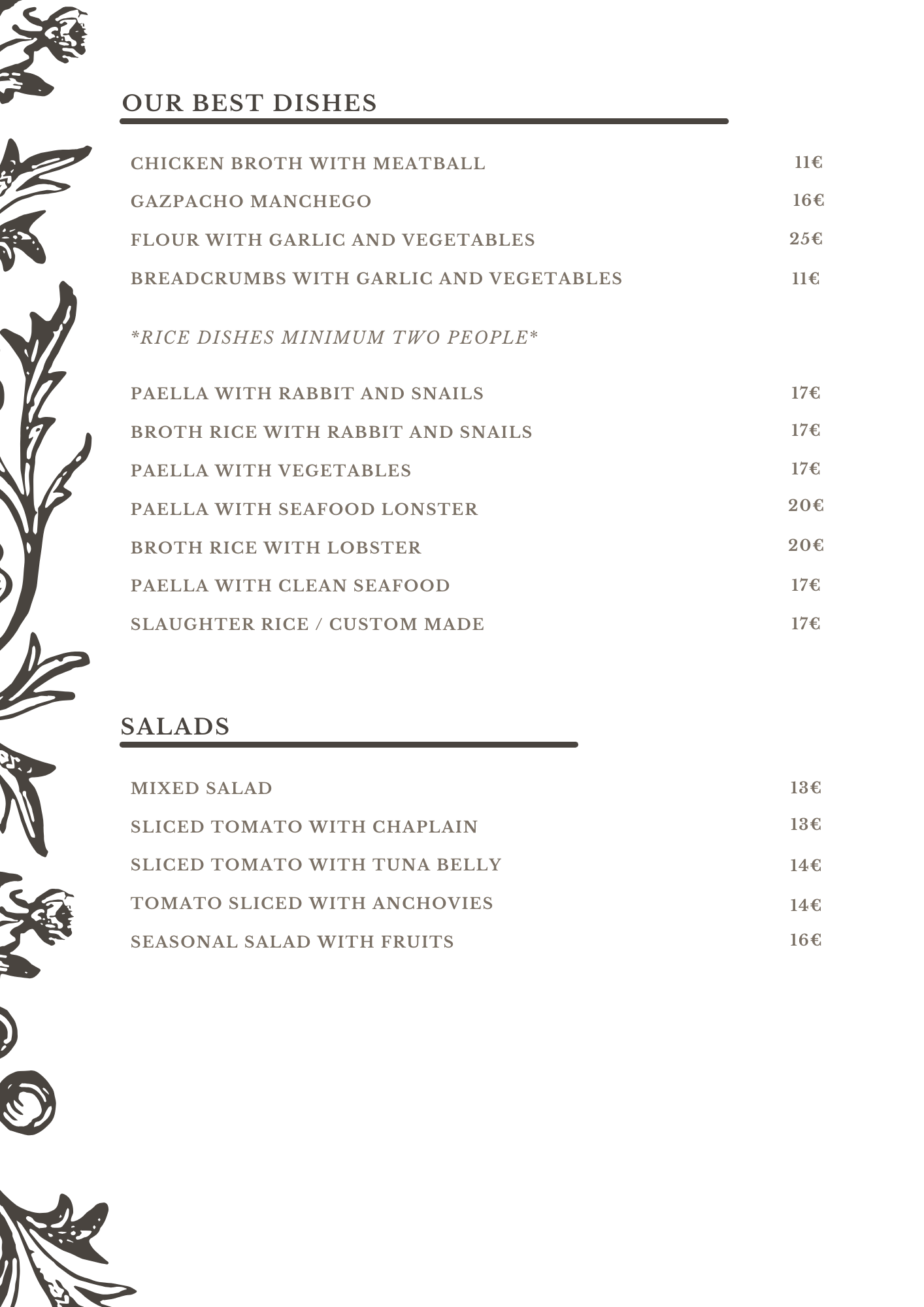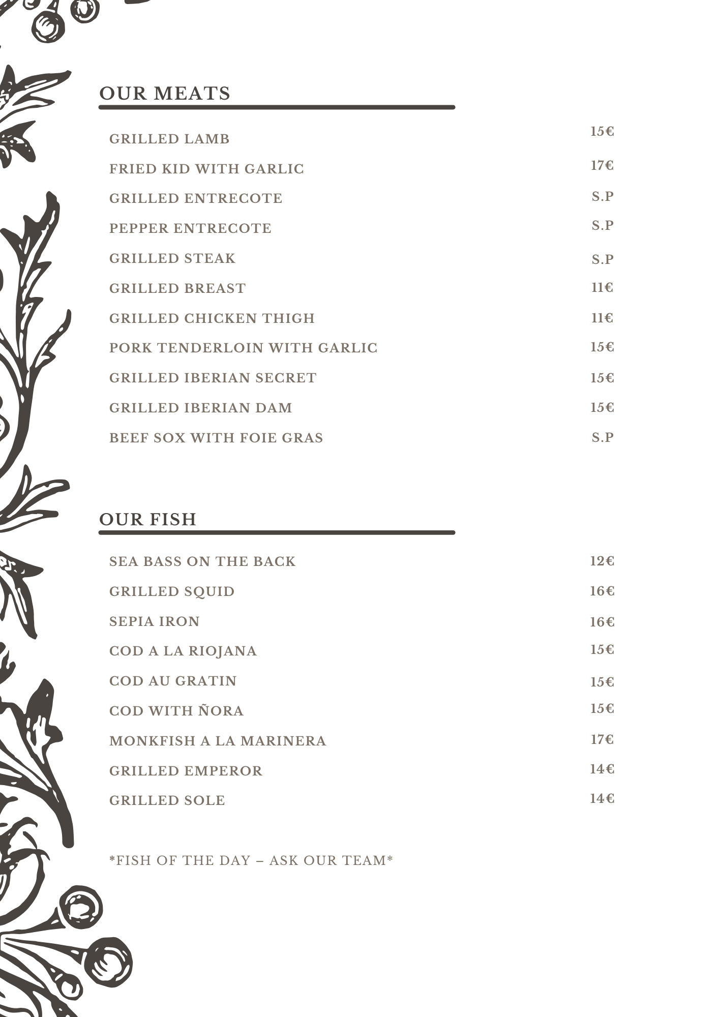 OUR MENUS