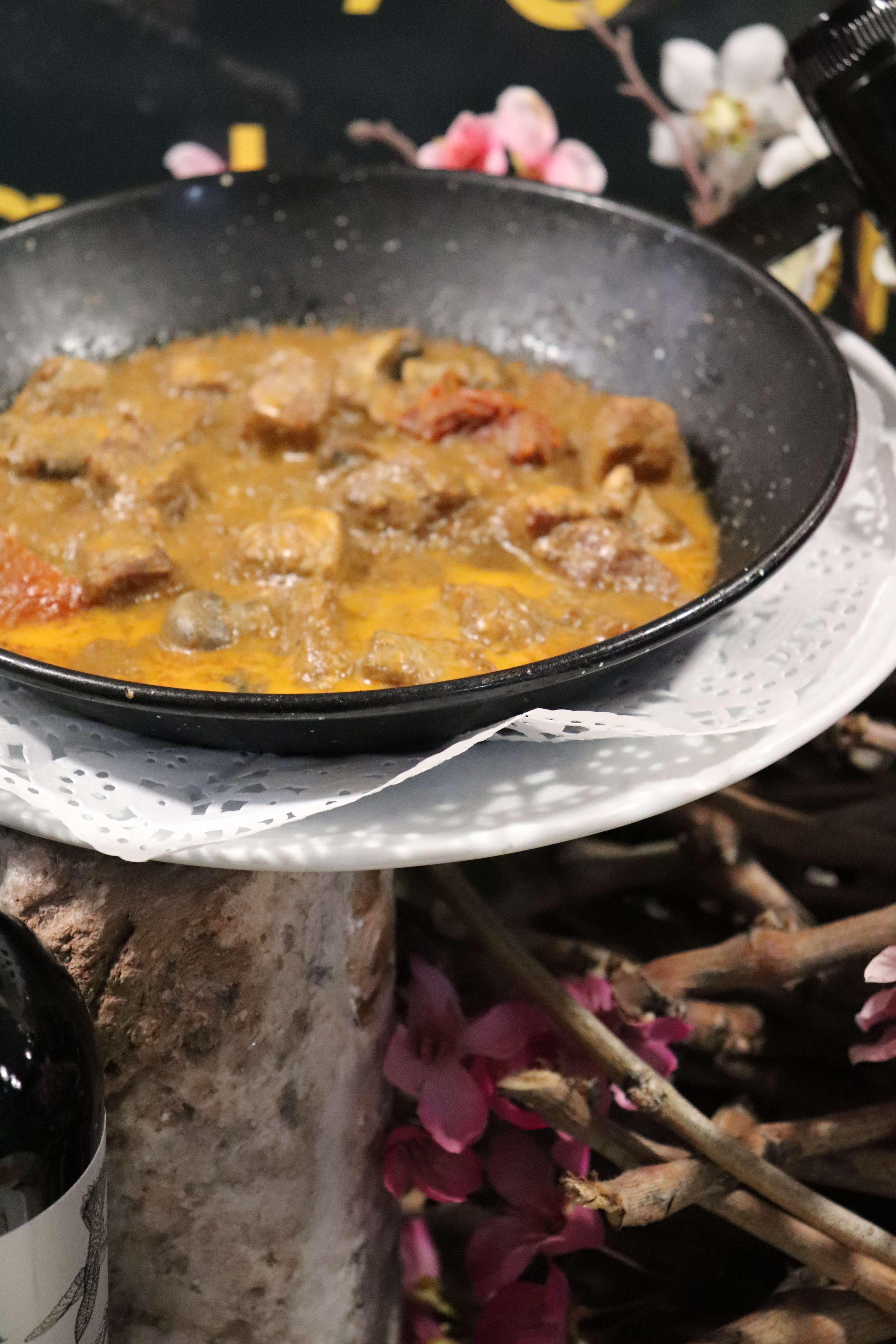 Preparamos los platos más típicos de Pinoso como son el arroz con conejo y caracoles, la gachamiga, los gazpachos pinoseros, las faseguras, ajos picados (alls i picat) o las migas de pan, siempre acompañados de los mejores vinos de la zona.
