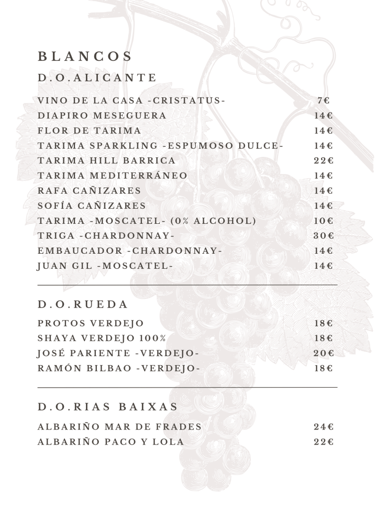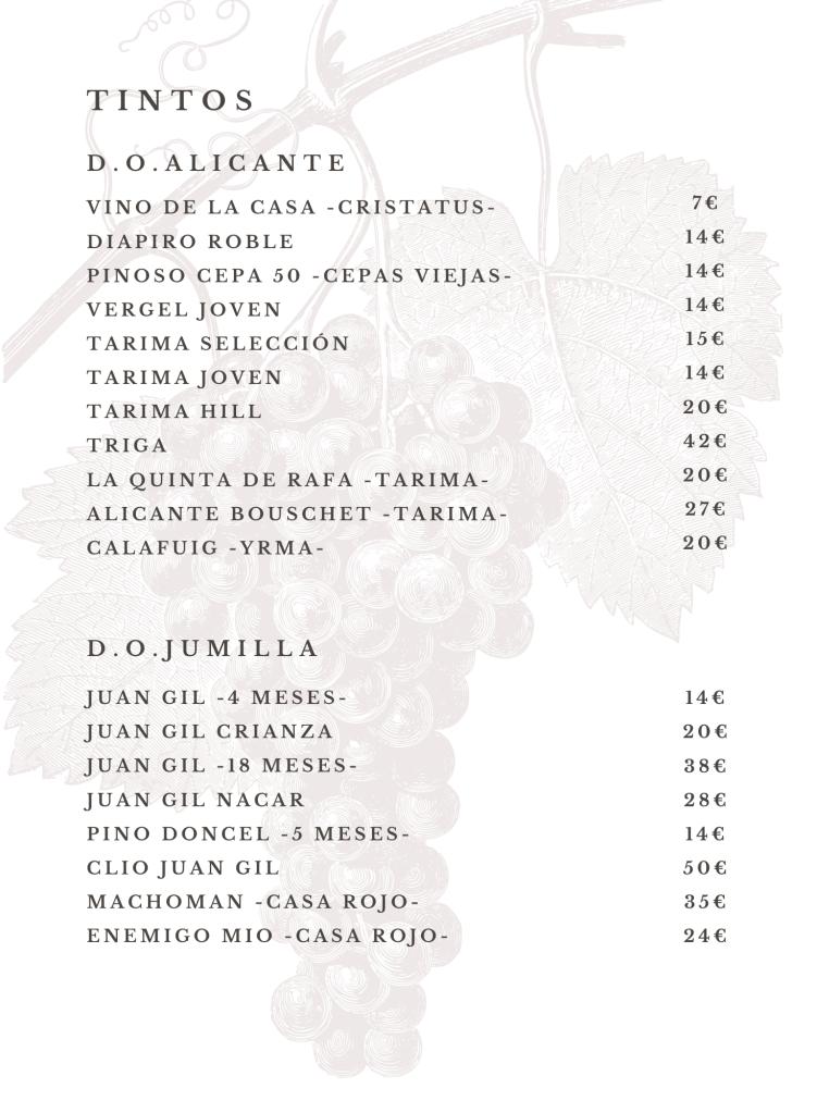 CARTA DE VINOS